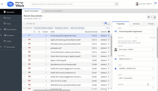 With its cutting-edge features designed for big businesses and enterprise-level procedures, iManage has long been a reputable name in legal document management. The platform focuses on arranging emails and documents in safe, centralised locations. AI-powered search engines increase efficiency by locating pertinent case files fast. iManage also prioritises security with audit trails, role-based access, and compliance assistance. While adoption may involve more technical setup compared to simpler applications, the richness of its functionality makes it invaluable for organisations wanting sophisticated knowledge management. Because of its scalability, businesses can use it as their document needs grow.