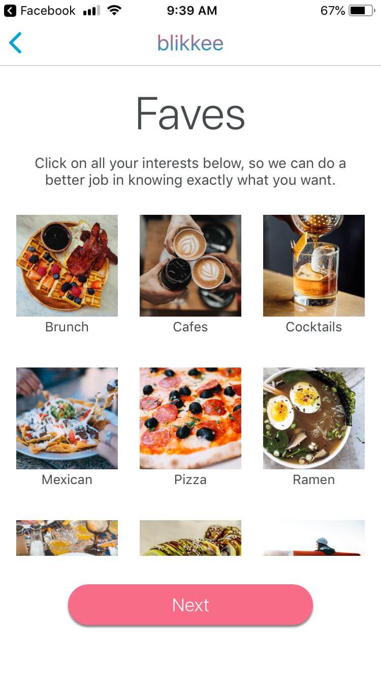 After you signed up, you will be greeted with a new page where you would be asked to select your interests. You can select any of the listed thumbnails to get proper recommendations through this app by the local users.
