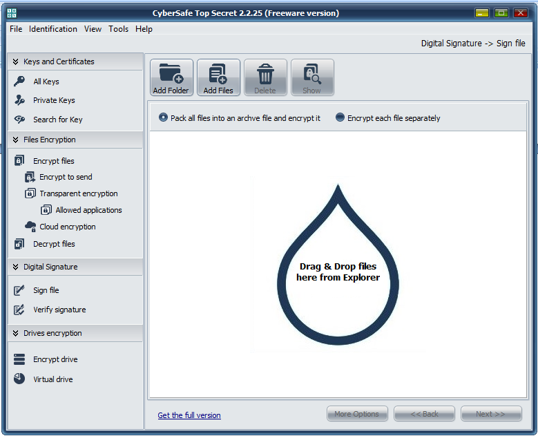 There is a wide variety of exe packages that you may download from the website. The URL of the website is http://cybersafesoft.com/products/topsecret/it should be noted that each of the downloaded from the above mentioned URL has its own unique features, please consider the contents of each package before buying and downloading the package. There is an availability of a free version which has many limitations to it but still allows you to test in order to understand the proper working of the software and to also test if it fulfill your needs or not. Though there are still some part of the software that you will not be able to test on the free version of the software, like the encryption of the network folders is not available in the free package but still you are able to get a fare idea of how the software works. It should be noted that for new users in the field off encrypting and security video tutorials have been made available to understand the working of the software.
