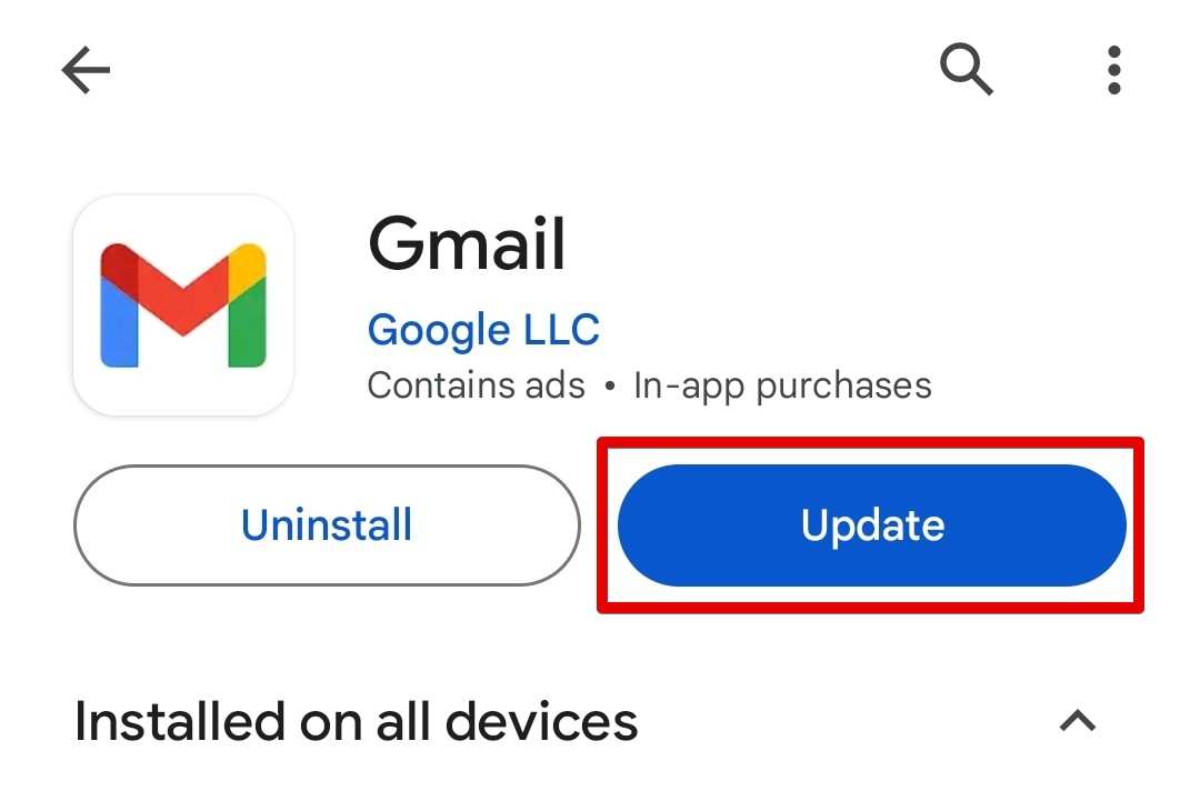 You’ll see the Gmail app listed here with an “Update” button next to it if there’s an update available.