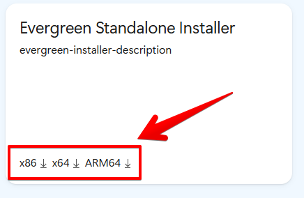 - Scroll down the page until you find the Evergreen Standalone Installer section.