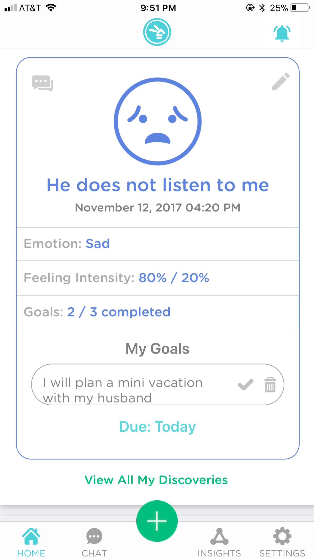 DISCOVERY: In this step, the main focus is to identify the main reason for the user’s negative emotions. The user is walked through a step by step process to deconstruct their emotions and the negative thinking beneath them. This method borrows on the principles of Cognitive Behavioural Therapy (CBT), a proven goal-oriented psychotherapy treatment that takes a practical approach towards confronting mental health issues. The user is asked the intensity of their emotion at the beginning and end of the Discovery section. If the user manages to lower the intensity of their emotion by at least 10%, they will then be notified that they have started on the path towards a healthier state of mind, called an Epiphany. The user will then plan real life goals that will further support their new mindset.