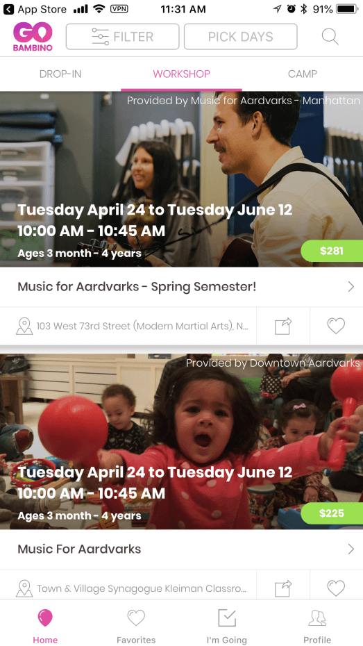 In addition, to make the GoBambino APP even more amazing, there is a variety of useful features such as; options to select ages, neighborhoods, days, times and more . If you haven’t heard of GoBambino yet, then don’t miss this opportunity – it is the only app that allows parents of New York to quickly and easily book activities all types for kids of all ages WITHOUT a monthly subscription fee!